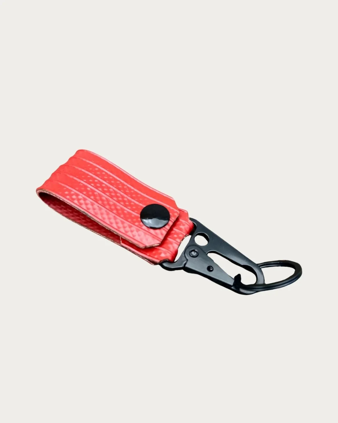Each keychain is slightly different. Marks, stitching lines or colour nuances can vary depending on the section of hose used. The function stays the same, the character changes.