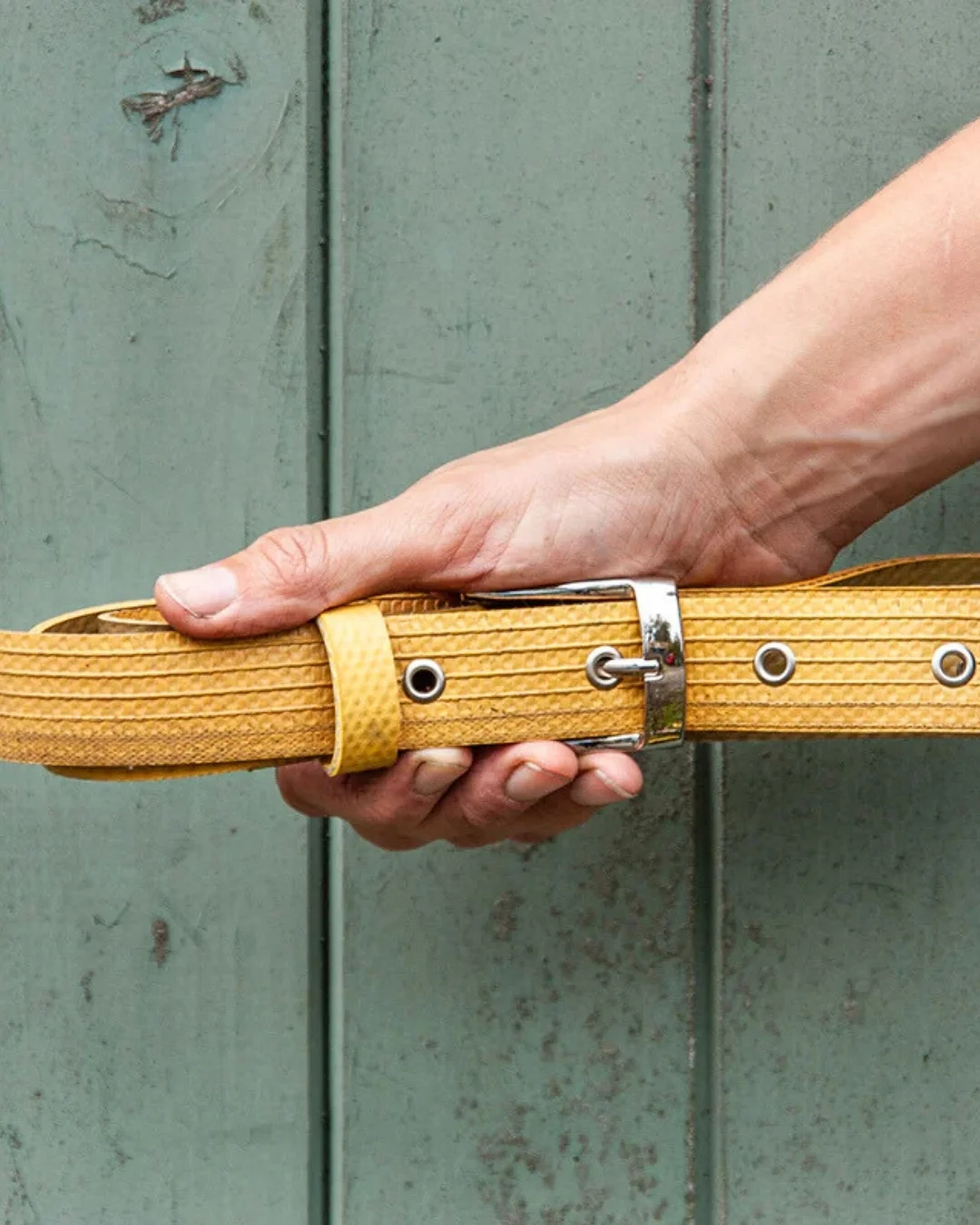 Beautifully finished belt made from used fire hoses. Robust, yet chic. Perfect with jeans, but also a bold detail with a smart suit.